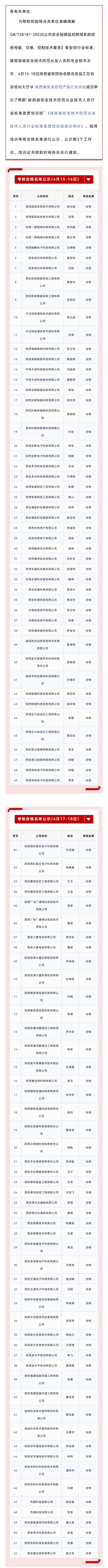陜西省安全技術防范從業技術人員行業標準宣貫培訓班考試合格名單公示